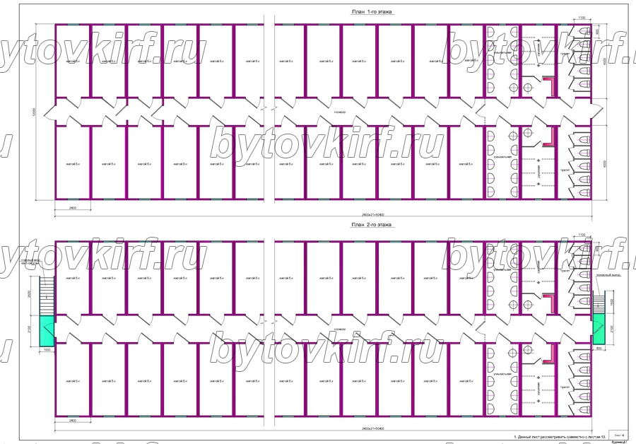 Планы двухэтажного общежития на 250 человек из 84 шт БК